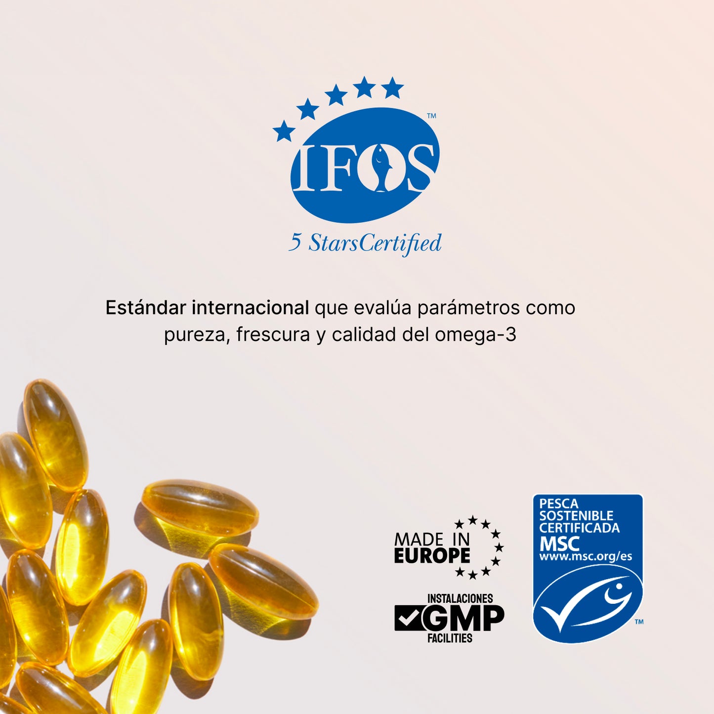 Our formula is distinguished by its Premium Triglyceride (TG) form , which guarantees high bioavailability and much more efficient absorption than other forms of Omega 3. In addition, the Omega 3 fatty acids come mainly from fish oil such as anchovies, sardines and mackerel, known for their high concentration of Omega 3.